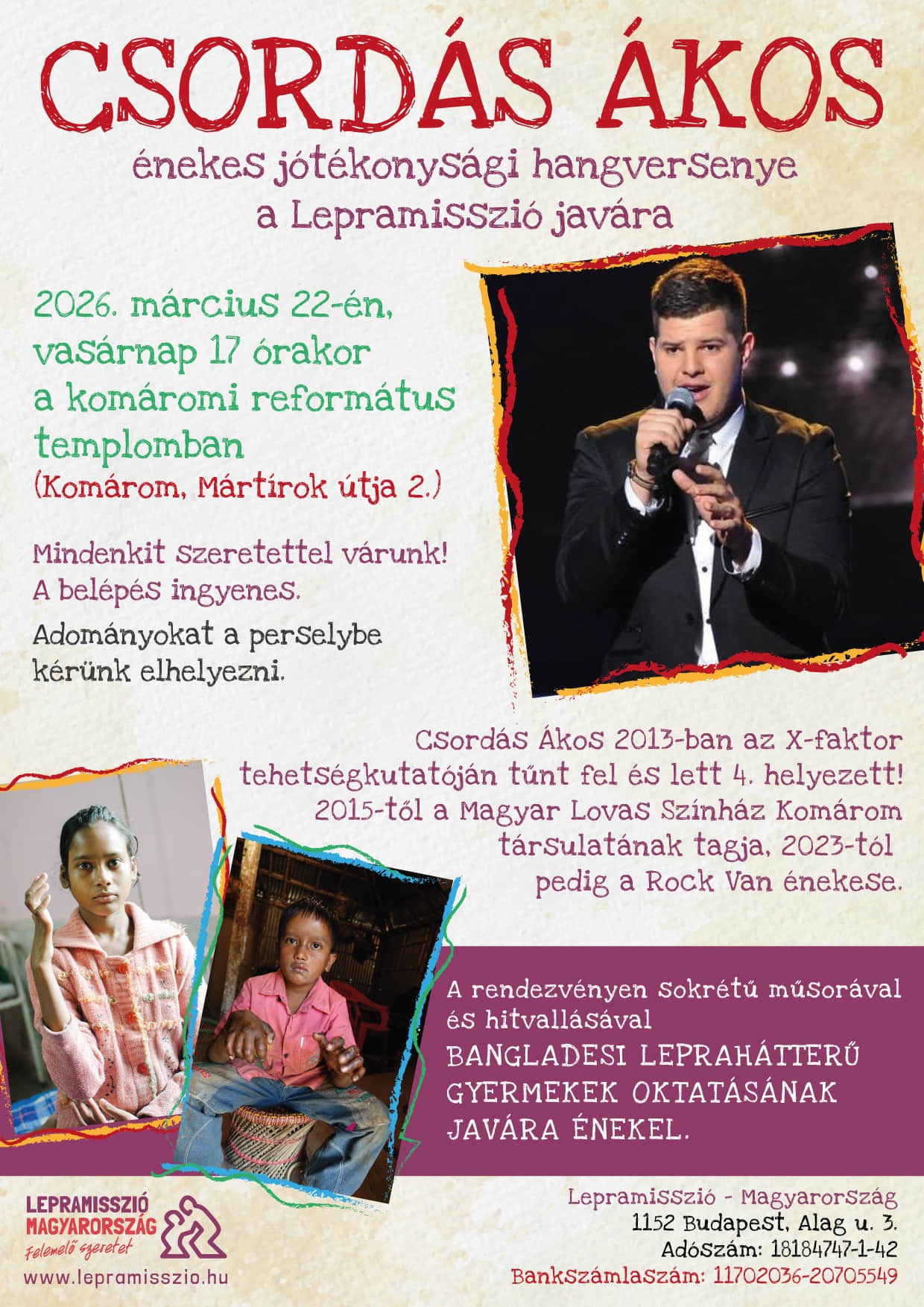 The first day of the Enying Török Bálint Days was a charity concert for the Lepramisszio - Hungary. We thank with a grateful heart the director of the Tinódi Lantos Sebestyén Reformed Art School: Mr. Szabó Előd teacher, Mr. Géza Iván pastor, teachers and students for raising awareness for children with leprosy! Thank you for your kindness, for the beautiful concert, for the opportunity to present our work, to sensitize the hearts of children! Thank you very much for your financial support, which will benefit leprosy children in Myanmar!